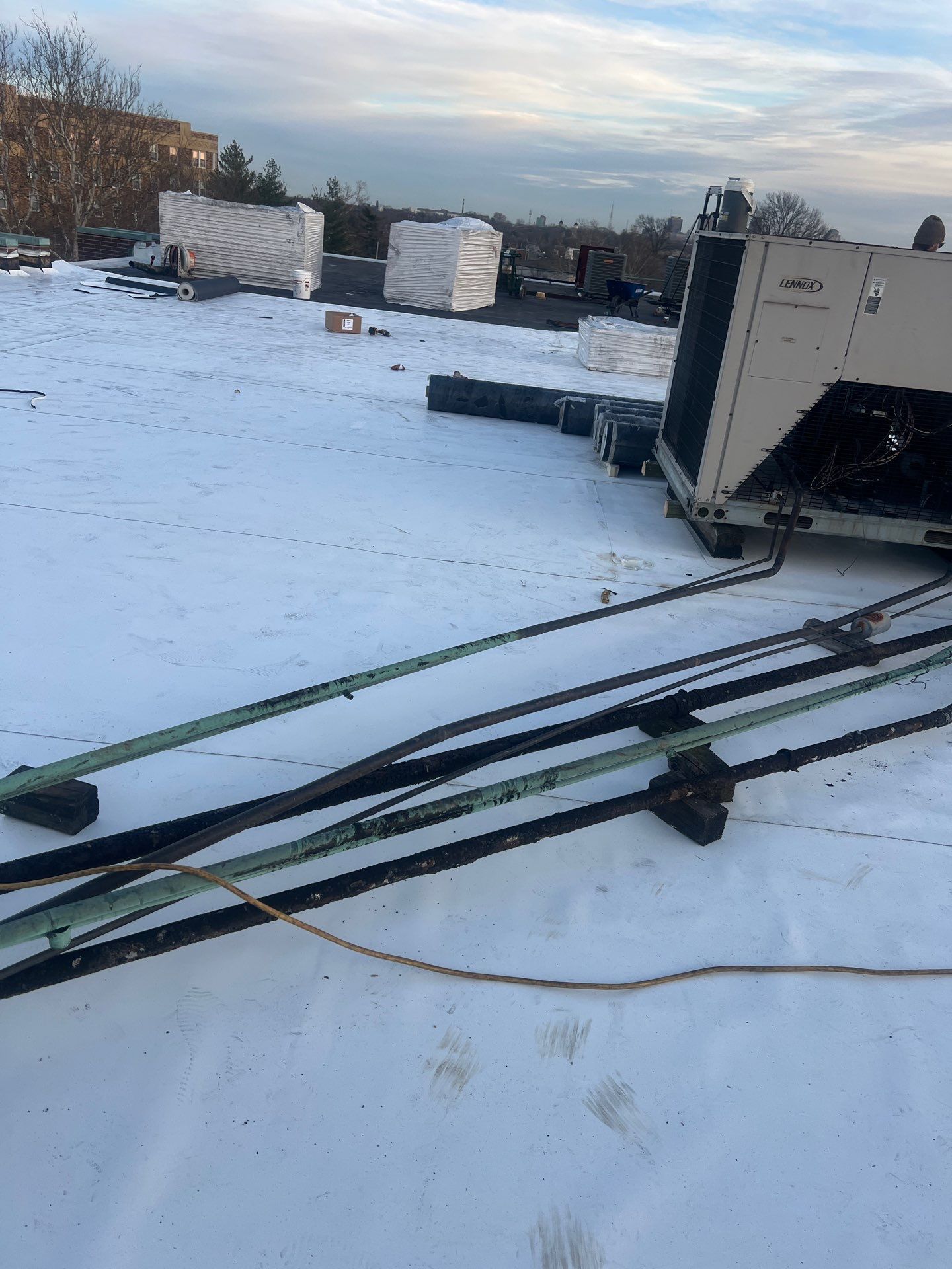 St. Louis weather can cause sudden membrane tears, flashing separation, and seam failure. Wind uplift and hail impact often lead to new leaks that may not be visible from the ground.